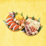 石狩鍋:秋鮭切身/40g×4切、ボイル甘えび/3尾、ボイル帆立/2個、かに入つみれ/2個、ラーメン/80g、みそたれ/50g 海鮮えび鍋:ボイル甘えび/3尾、えび入つみれ/2個、つぼ抜きいか/100g、うどん/250g、えび魚醤油入りたれ/50ml×1袋